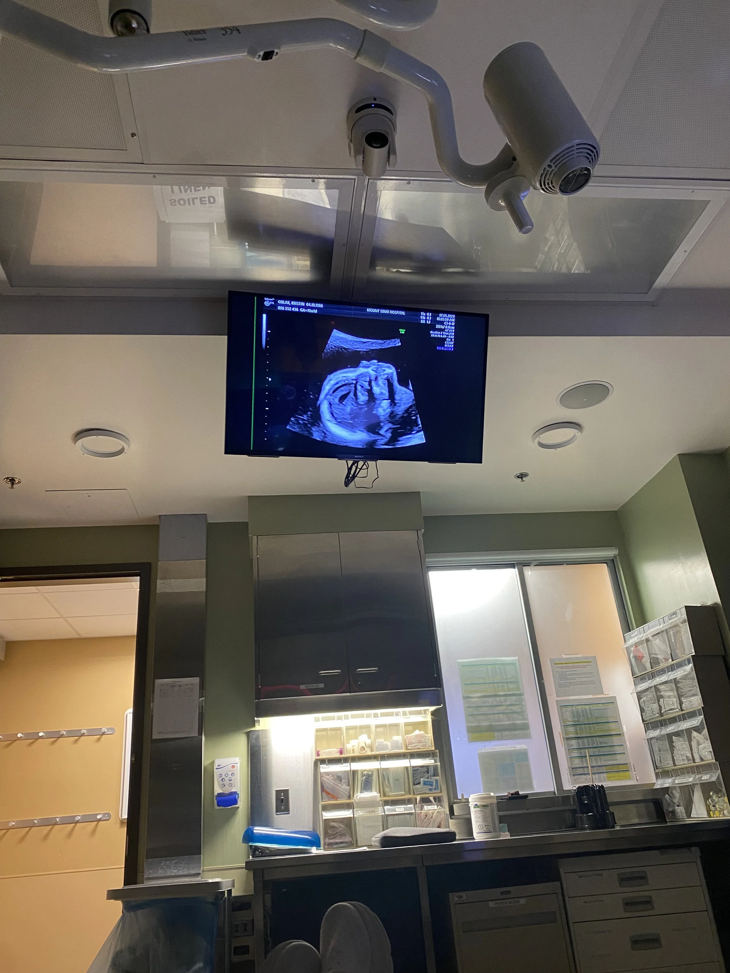 My ultrasound at Mount Sinai Hospital — it was on a large screen above me, and I got to watch everything being done. My doctor was exceptionally thorough and explained everything. Look at our little sweetie!